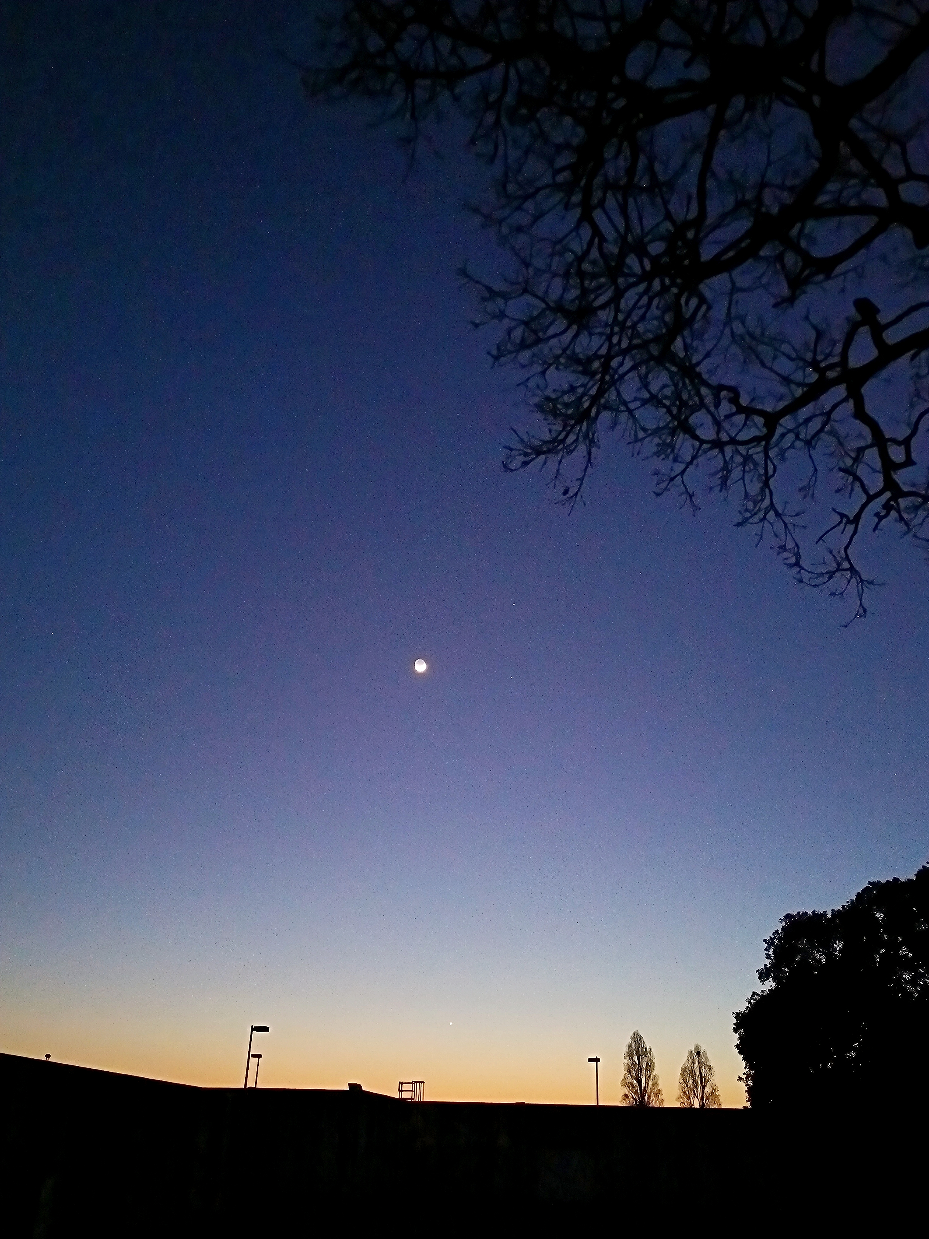 Étoiles et croissant de Lune au crépuscule